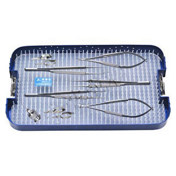 顯微外科手術器械包 HC-B801-1詳細信息: 顯微鑷15cm 0.3mm 直2把, 顯微持針鉗14cm 直1把,顯微剪14cm直1把,顯微止血夾大2只,顯微止血夾小2只,平頭沖洗針1只。配帶硅膠器...